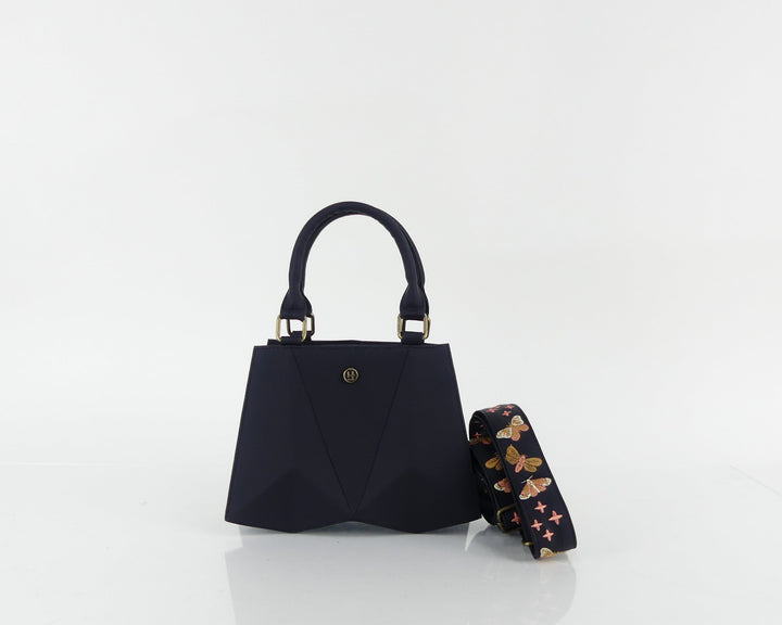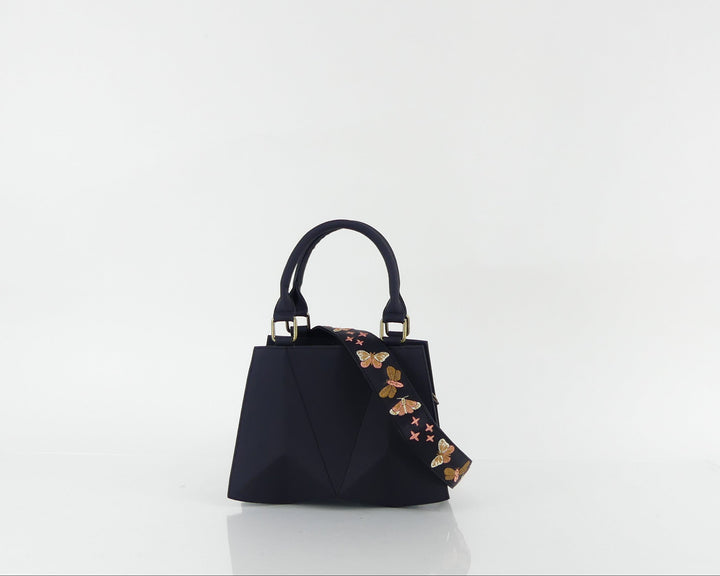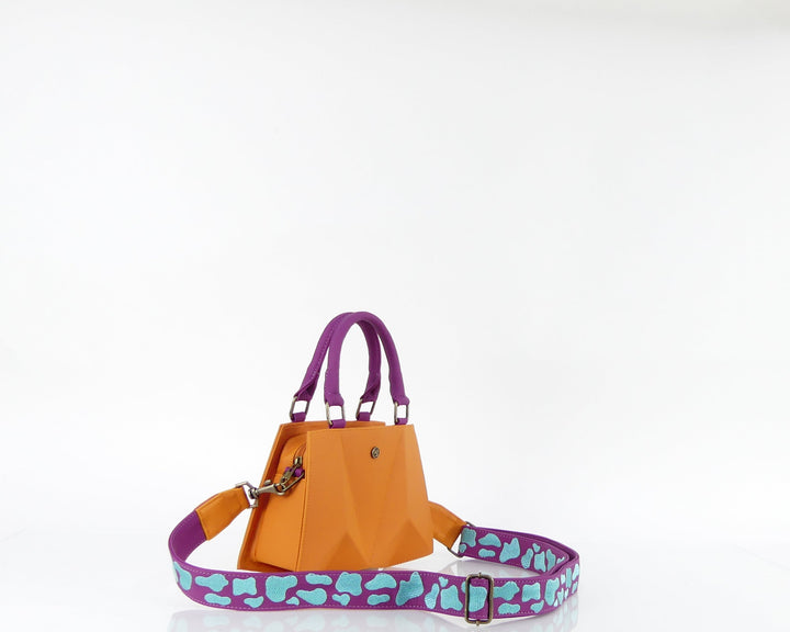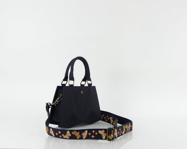 Bolso de mano con un exclusivo strap bordado largo extraíble para llevar de manos libre. Bolsillo interno con cremallera y bolsillo interno sencillo. Cierre principal de cremallera.