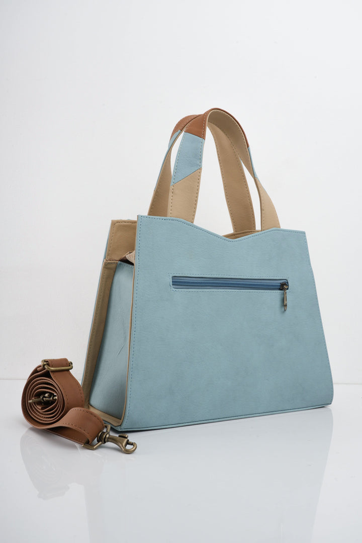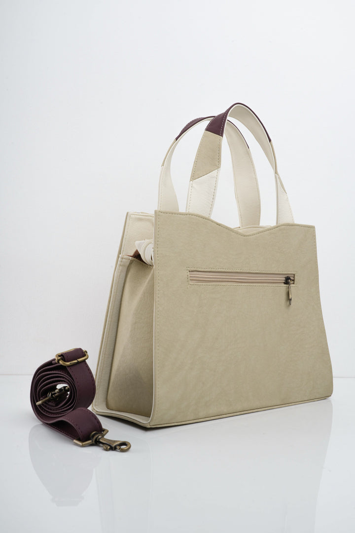 Bolso de mano, incluye correa larga para llevar de manos libres. Cuenta con dos bolsillos internos, uno sencillo y otro con cremallera. Bolsillo externo con cremallera. Cierre principal de cremallera.