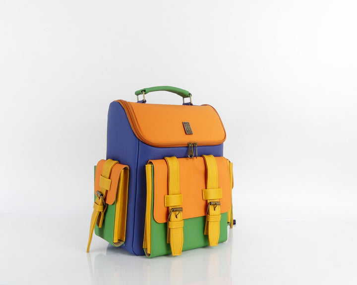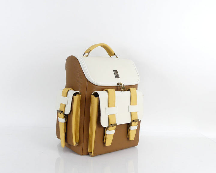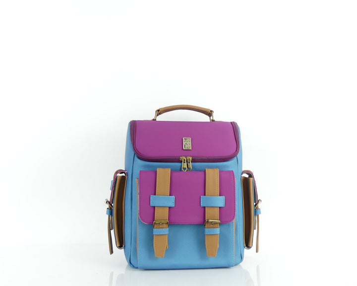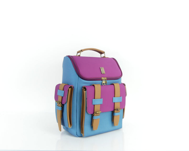 Mochila espaciosa con un bolsillo frontal que cuenta con cierre de broche magnético, dos bolsillos laterales y correas ajustables. En su interior, dispone de dos bolsillos perfectos para llevar la computadora portátil y/o tableta, así como un bolsillo con cremallera y cierre principal de cremallera.