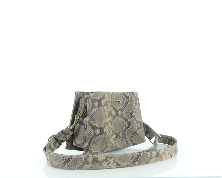 Francia pitón, bolso manos libres, cuenta con doble bolsillo interno, un bolsillo sencillo y un bolsillo con cremallera. Cierre principal de cremallera. Correa larga, extraíble y ajustable.